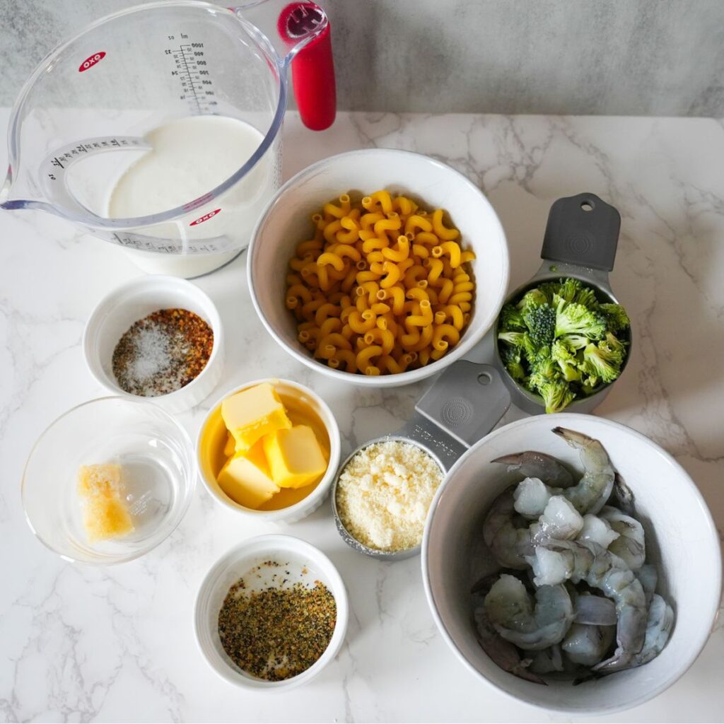 Let the sauce thicken before tossing in the shrimp, broccoli, and pasta. Stir until everything is well coated in the creamy sauce, then serve warm.